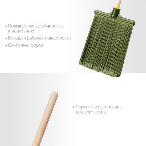 СИБИН 320 мм, ширина 255 мм, распушенная гибкая, коническое резьбовое соединение, плоская пластиковая метла на деревянном черенке 39224-1