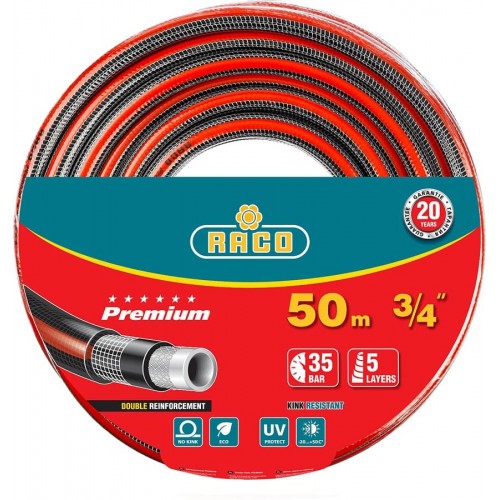 Шланг для полива армированный RACO 40300-3/4-50_z01, применяется для полива растений на садово-огородных участках. Два вида армирования шланга (текстильное и диагональное) обеспечивают стабильность формы при высоком давлении, а также предотвращает его перекручивание. Пятислойная структура шланга обеспечивает высокое максимальное давление на разрыв. Высококачественные материалы не содержат кадмий и барий. Внутренний слой шланга препятствует образованию водорослей. Шланг обладает высокой гибкостью и защищен от ультрафиолетовых лучей.