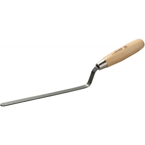 Расшивка каменщика STAYER 0840-10, предназначена для уплотнения швов в кирпичной и каменной кладке. Используется для нанесения строительных растворов, нержавеющее стальное полотно обеспечивает прочность конструкции, а деревянная ручка удобство в работе.