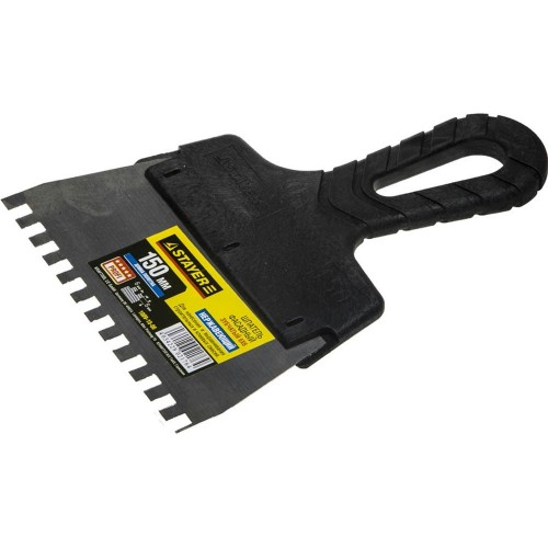 Шпатель зубчатый STAYER 1009-15-06, предназначен для нанесения и выравнивания строительных и клеевых смесей. Благодаря зубчатой кромке шпатель идеально подходит для работы со строительными и клеевыми смесями, полотно из нержавеющей стали обеспечивает надежность и долгий срок службы, а удобная пластмассовая рукоятка создает условия для комфортной работы.
