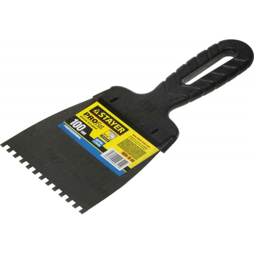 • STAYER 100 мм, нержавеющая полотно, пластмассовая рукоятка, шпатель зубчатый 1009-10-04