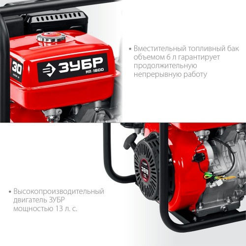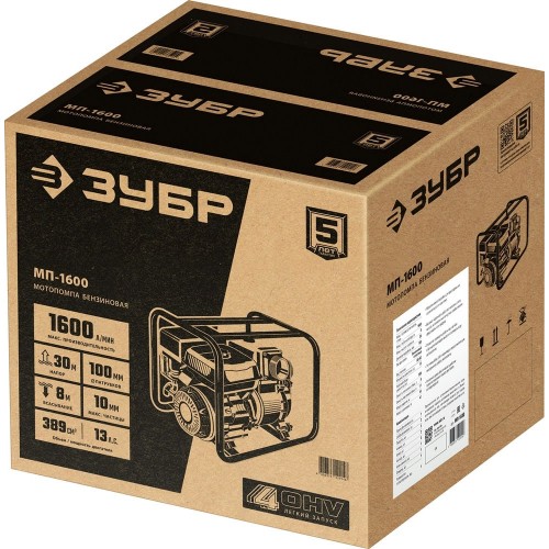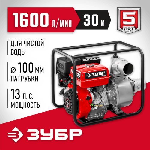 ЗУБР 1600 л/мин, мотопомпа бензиновая МП-1600