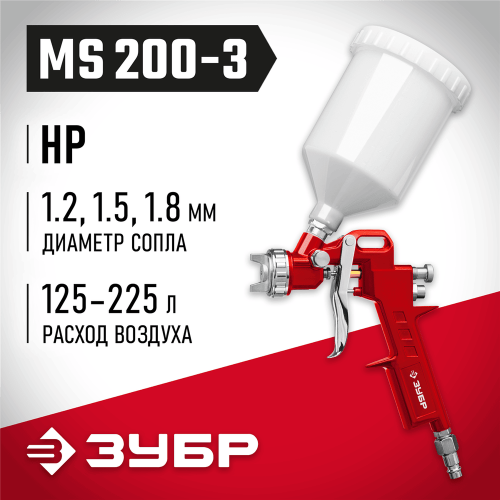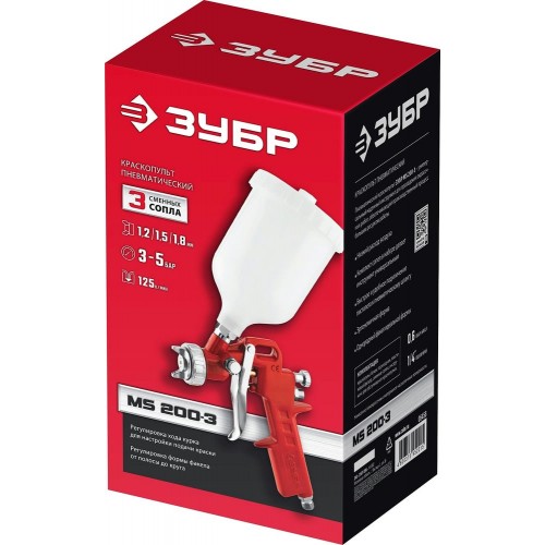 Краскопульт ЗУБР ″МС 200+″ пневматический - универсальный надежный инструмент для проведения окрасочных работ, обеспечивающий производственный процесс большим ресурсом работы.