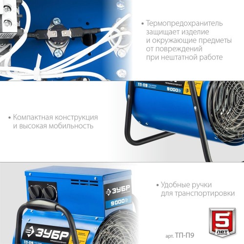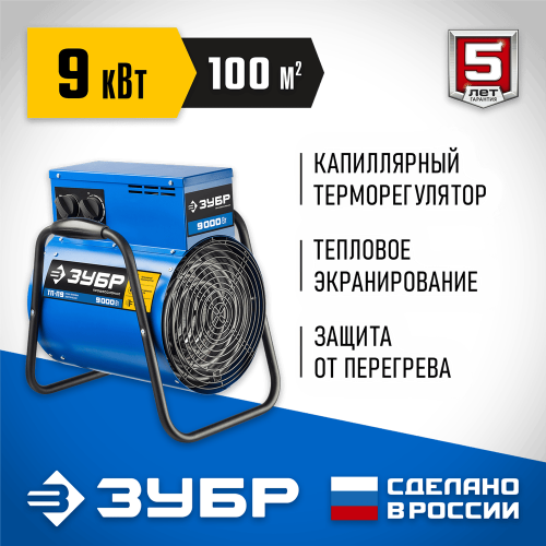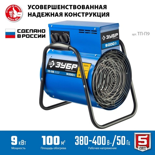 ЗУБР 9 кВт, электрическая тепловая пушка ТП-П9 Профессионал