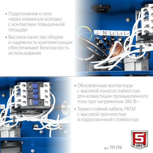 - Раздельное включение ТЭНов увеличивает гибкость настройки температуры в помещении