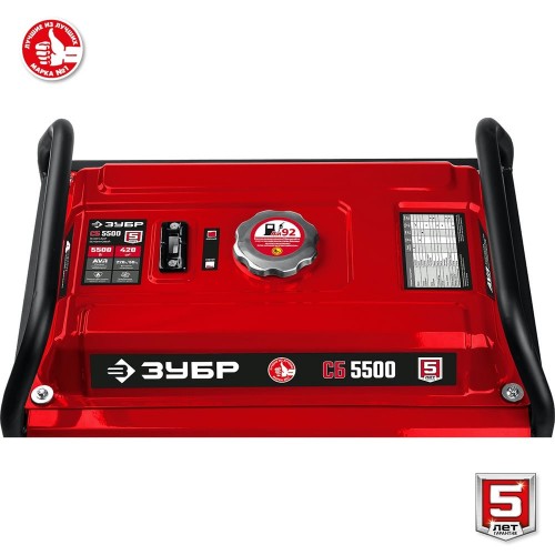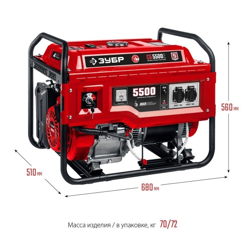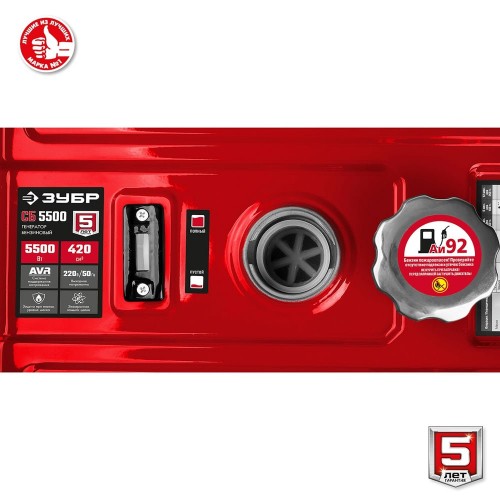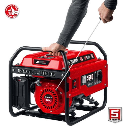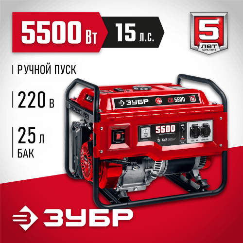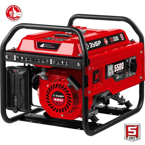 Бензиновый электрогенератор ЗУБР СБ-5500, предназначен для обеспечения электрической энергией потребителей в отсутствии электрической сети, а также для использования в качестве резервного или аварийного источника электрической энергии. Мощный генератор, который пригодится не только в загородном доме, но и в мастерской, и на строительной площадке, и вообще везде, где нет стационарного электричества, но нужно иметь работающую технику и инструмент. Высокое качество выходной энергии позволяет запитывать даже требовательную электронную технику. Дополнительная розетка увеличенной мощности для подключения таких потребителей, как нагреватели, калориферы, осветительная техника или несколько потребителей одновременно. Розетка 220В увеличенной мощности для подключения наиболее мощных потребителей расширяет возможности использования генератора.