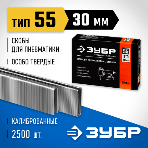 Скобы ЗУБР 31855-30, предназначены для скрепления листовых материалов – бумаги, картона, кожи, пленок между собой с помощью степлера.