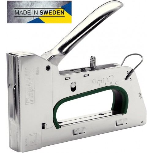 Степлер (скобозабиватель) RAPID 5000067, предназначен для широкого спектра сложных профессиональных задач и точных работ. R34E особенно ценят за увеличенный срок службы. Инструмен оснащен новым запатентованным легким спуском с 3-ступенчатой регулировкой силы нажатия. Благодаря этой функции работать с R34E на 40% легче, чем с обычным инструментом. Подходит для многих видов трудных задач, в том числе крепления деталей из тонкой древесины или масонита, а также работы с такими материалами, как картон, оберточные пластик и бумага, которые требуют надежной фиксации. Цельнометаллический корпус. Эргономичная рукоятка с замком для удобного хранения.