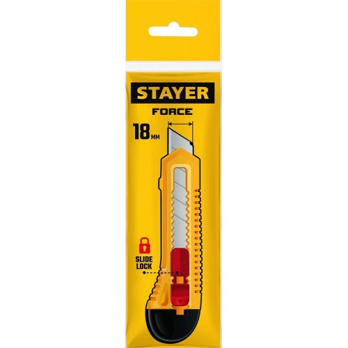 STAYER 18 мм, сегментированное лезвие, сдвижной фиксатор, нож упрочненный FORCE 0911_z01 Master