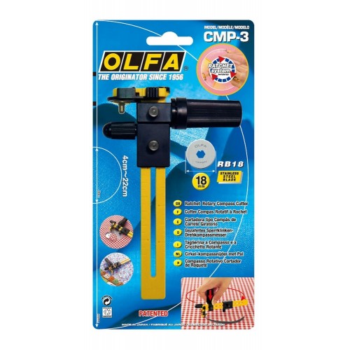 OLFA диаметр реза 40-220 мм, с круглым лезвием 18х0,3 мм, нож циркульный трещоточный OL-CMP-3