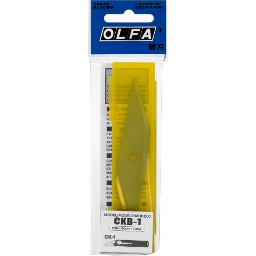 Используются в качестве сменных рабочих элементов в ножах OLFA CK-1. Применяются для разрезание обоев, пленок, картона, срезание монтажной пены, для резьбы по дереву, заточки карандашей и других хозяйственных работ.Дополнительная информация