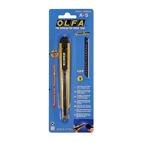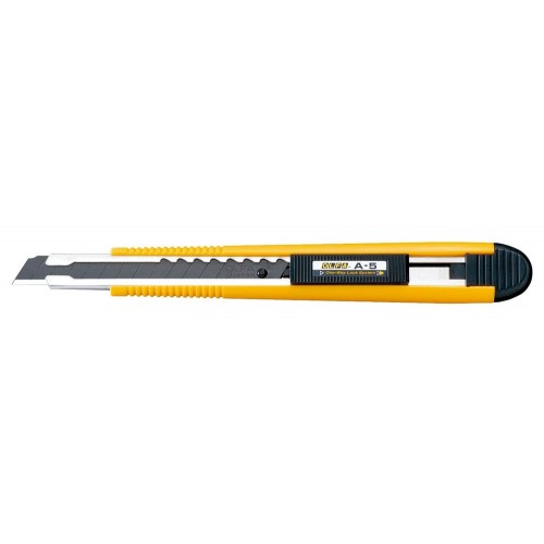 Благодаря односторонней системе запирания, нож OLFA A-5 представляет собой усовершенствованную модель с автоблокировкой и сверхострым черным лезвием.