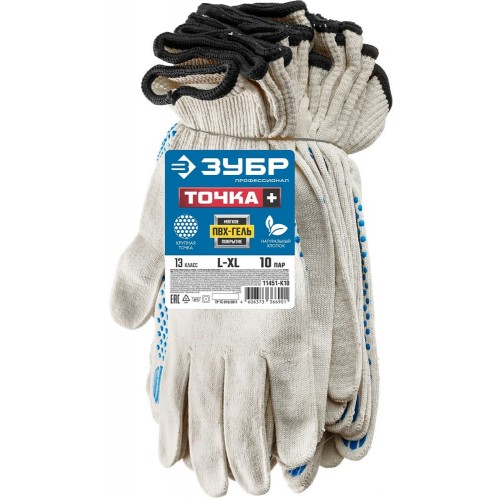 Перчатки с точками увеличенного размера ЗУБР ТОЧКА+ 11451-K10, предназначены для защиты рук при выполнении механических работ в тяжелых условиях. Дышащий материал перчаток позволяет работать в них, не снимая долгое время. Мягкое покрытие из ПВХ-геля обеспечивает надежный хват.