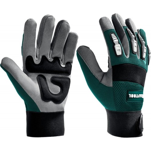 Профессиональные комбинированные перчатки KRAFTOOL EXTREM 11287-L, предназначены для защиты рук при выполнении механических работ в тяжелых условиях. Специальные пластиковые накладки обеспечивают дополнительную защиту пальцев. Эластичная манжета с застежкой-липучкой надежно фиксирует перчатки на руках. Многослойная сетчатая вставка на тыльной стороне ладони создает отличную воздухопроницаемость. Двойные плоские швы и анатомическая форма перчаток способствуют повышенному комфорту при выполнении работ.