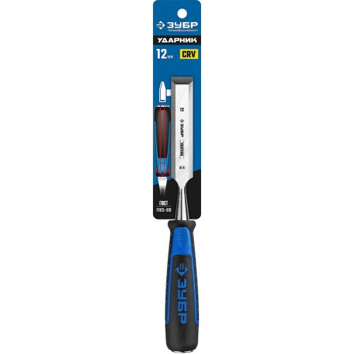 ЗУБР 12 мм, для ударных работ, с ударопрочной двухкомпонентной ручкой и стальным затыльником, стамеска 18097-12_z01 Профессионал