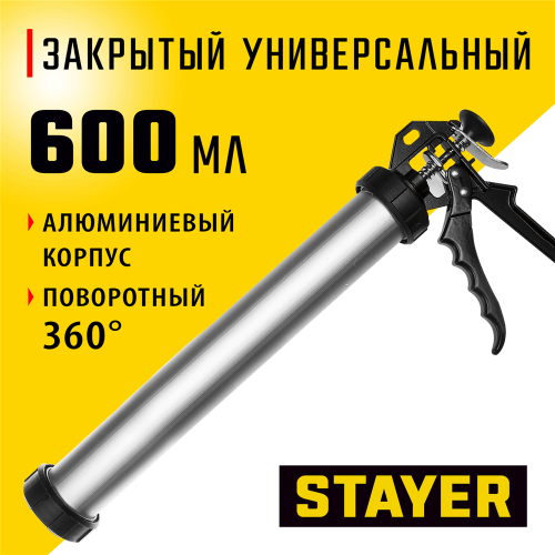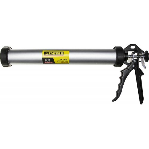 Пистолет для герметиков STAYER подходит для работы с герметиками в алюминиевой фольге и пластиковых картриджах объемом до 600 мл, эргономичная форма рукоятки создает комфортные условия работы, Изготовлен из особопрочных материалов.