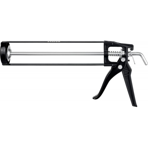 Пистолет для герметика STAYER 0665, предназначен выдавливания и нанесения герметиков, а также клеевых составов из картриджей объемом до 310 мл. Имеет скелетную конструкцию, оснащен шестигранным усиленным штоком, так же использующиеся более прочная рукоятка и головная части пистолета позволяют работать с материалами повышенной вязкости.