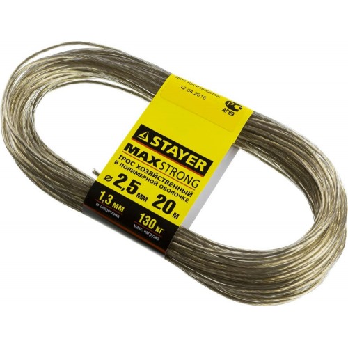 STAYER 20 м, стальной, полимерная оболочка, 2.5 мм, трос хозяйственный 50145-2.5