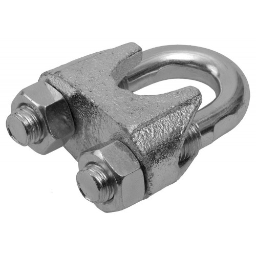 Для формирования петель на концах троса. Используются на тросах без оплетки ПВХ (если трос имеет оплетку, ее необходимо снять перед установкой зажима). Свободный конец троса закладывается в зажим (конец троса должен выходить из зажима на расстояние не менее 1/2 диаметра троса). Далее в петлю троса закладывается коуш, после которого трос помещается в зажим с другой стороны отверстия. Сверху помещается прижимная скоба, которую небходимо крепко зафиксировать с помощью гаек. Свободный конец троса рекомендуется обмотать изолентой для предотвращения разматывания троса после установки. Перед использованием необходимо убедиться, что гайки на зажимах закручены полностью. Рекомендуемое расстояние между зажимами равно шестикратному диаметру троса. Минимальное количество зажимов - 3 шт.