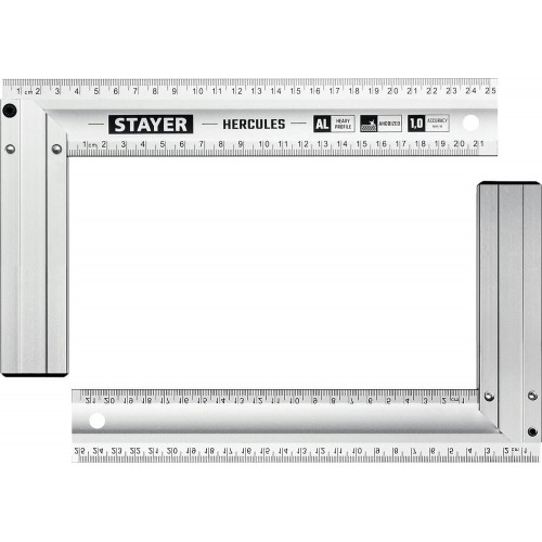 STAYER 250 х 2 мм, с усиленным алюминиевым полотном, жесткий столярный угольник HERCULES 3432-25 Professional