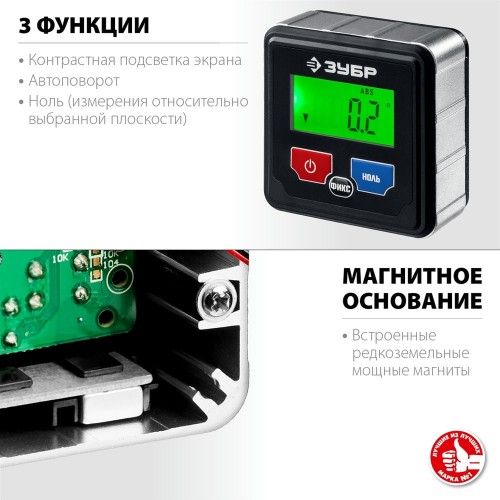 Магнитный уровень-уклономер электронный ЗУБР МИКРО 34743_z01, предназначен для измерительных работ и контроля выставленных под углом конструкций. Электронный модуль обеспечивает высокую точность и скорость проведения измерений. Встроенные магниты для крепления на металлических поверхностях. Усиленный металлический корпус.