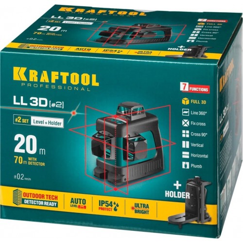 KRAFTOOL линейный лазерный нивелир с держателем LL3D 2 34640-2 Professional