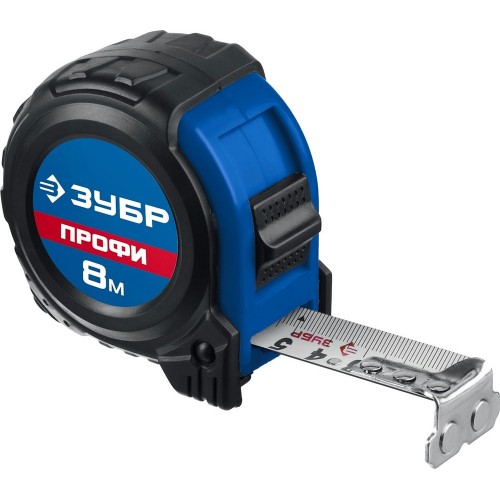 Рулетка измерительная ЗУБР 34056-08-25_z02, предназначена для проведения линейных замеров. Долговечное нейлоновое покрытие полотна. Магнитный крюк. Усиленное полотно из высококачественной инструментальной стали. Ударопрочный обрезиненный корпус. Большой вылет полотна без излома.