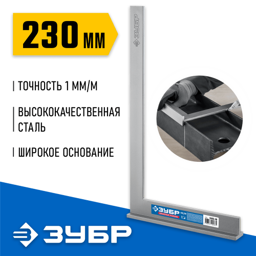 Угольник Зубр 3465-40, предназначен для контроля перпендикулярности конструкций в машиностроительных, металлообрабатывающих и деревообрабатывающих мастерских, при столярных, плотницких и прочих точных работах. Все поверхности угольника прошли многоступенчатую закалку.