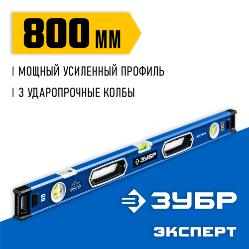 Уровень строительный ЗУБР 34570-080, предназначен для контроля горизонтальности и вертикальности поверхностей. Точность измерений 0.5 мм/м. 3 ударопрочные колбы с гарантией 50 лет. Зеркальная колба упрощает измерения вертикальных поверхностей.