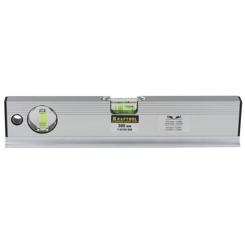 Уровень для "водных" работ KRAFTOOL 1-34733-030, предназначен для выявления отклонений поверхностей от произвольно заданных углов, а также горизонтали и вертикали. Одна из встроенных ампул имеет эффект увеличения благодаря фосфору. Это позволяет работать в помещениях с плохим освещением. Корпус уровня для водных работ имеет усиленный алюминиевый профиль.