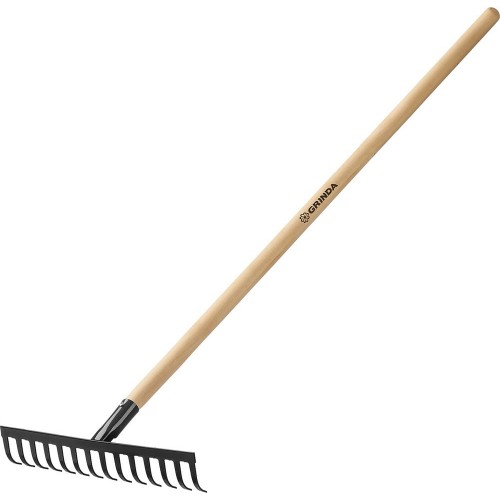 Грабли прямые садовые GRINDA 39583-14, предназначены для очистки газонов от скошенной травы, листьев, а также для выравнивания грунта. Рабочая часть состоит из 14 прямых зубьев. Черенок выполнен из твёрдой древесины. Прочная, надежная конструкция и высококачественные материалы гарантируют долгий срок службы инструмента. Рабочая часть изготовлена из высокоуглеродистой стали, заточена и закалена, имеет защитное покрытие. Черенок из твердой древесины (береза, высший сорт) обладает высокой прочностью, не выскальзывает из рук.