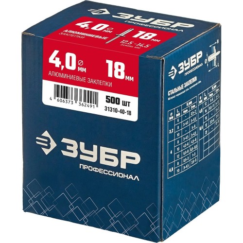 ЗУБР 4.0 х 18 мм, 500 шт., алюминиевые заклепки 31310-40-18 Профессионал
