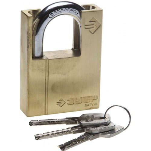• ЗУБР 60 мм, замок навесной, латунный корпус, закаленная дужка 37297-60