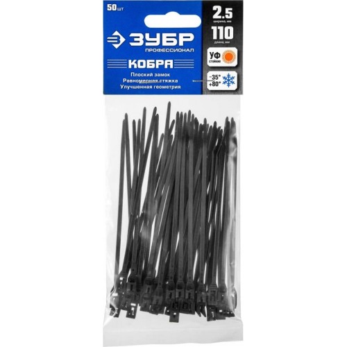 ЗУБР 110х2.5, 50 шт., хомуты нейлоновые черные, с плоским замком КОБРА 30935-25-110 Профессионал