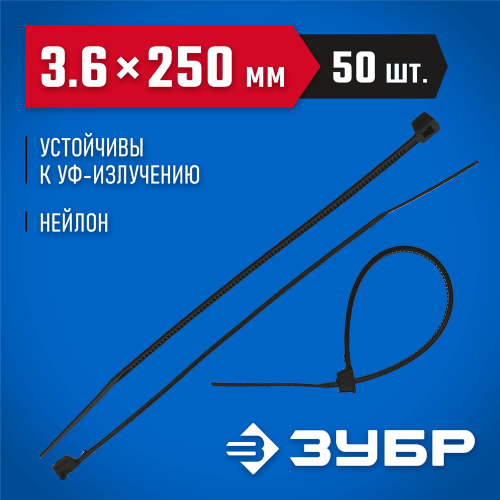 Пластиковые хомуты ЗУБР 4-309037-36-250, предназначены для быстрой стяжки кабелей электропроводки в пучок и их крепления к различным элементам конструкции при проведении электромонтажных работ. Пластиковые хомуты (стяжки) имеют очень широкий спектр применения при проведении строительных и ремонтных работ. Изготовлены из высококачественного прочного и эластичного нейлона. Благодаря устойчивости к воздействию ультрафиолетового излучения черные хомуты можно использовать вне помещений. Отличаются повышенной морозоустойчивостью и термостойкостью. Диапазон рабочих температур от -35°С до +80°С допускает использование хомутов в самых разнообразных условиях. Обладают хорошими диэлектрическими свойствами.