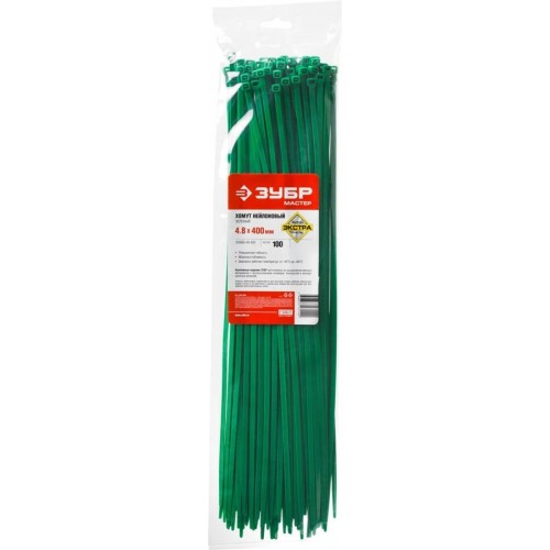 ЗУБР 400х4.8 мм, 100 шт., хомуты нейлоновые зеленые 309060-48-400