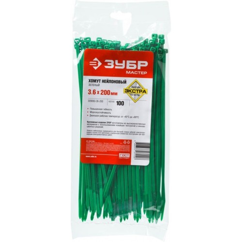 Пластиковые хомуты ЗУБР 309060-36-200, предназначены для быстрой стяжки кабелей электропроводки в пучок и их крепления к различным элементам конструкции при проведении электромонтажных работ. Пластиковые хомуты (стяжки) имеют очень широкий спектр применения при проведении строительных и ремонтных работ. Изготовлены из высококачественного прочного и эластичного нейлона. Окраска в различные цвета позволяет подобрать хомут под цвет соединяемых материалов. Отличаются повышенной морозоустойчивостью и термостойкостью. Диапазон рабочих температур от -35°С до +80°С допускает использование хомутов в самых разнообразных условиях. Обладают хорошими диэлектрическими свойствами.