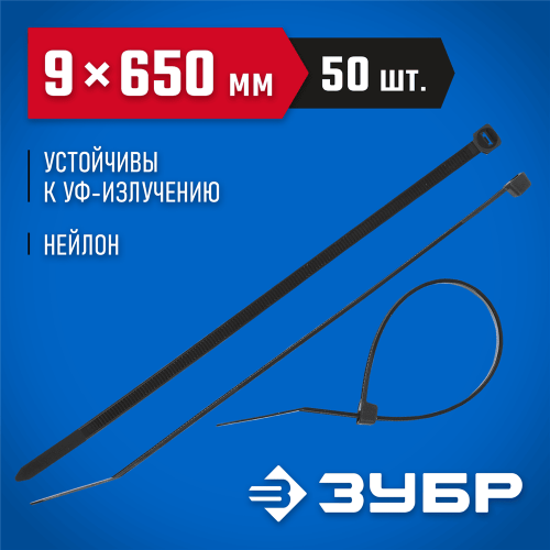 ЗУБР 650х9 мм, 50 шт., хомуты нейлоновые черные 309030-90-650