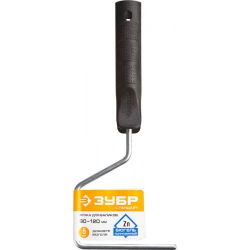 Ручка для валика ЗУБР 05683-10, предназначена для валиков с посадочным диаметром 6 мм и длиной 80-120 мм. Необходимый и удобный инструмент для работы с малярным валиком. Эргономичная рукоятка адаптирована для использования со стандартными телескопическими стержнями конической формы (с фиксатором и без фиксатора).