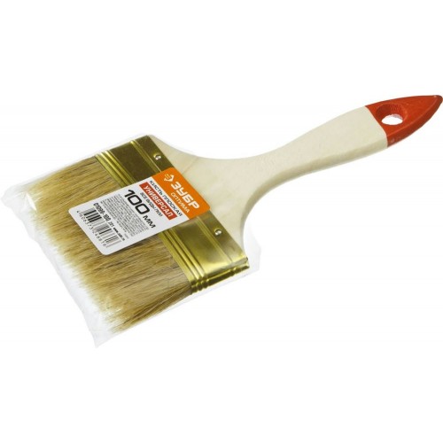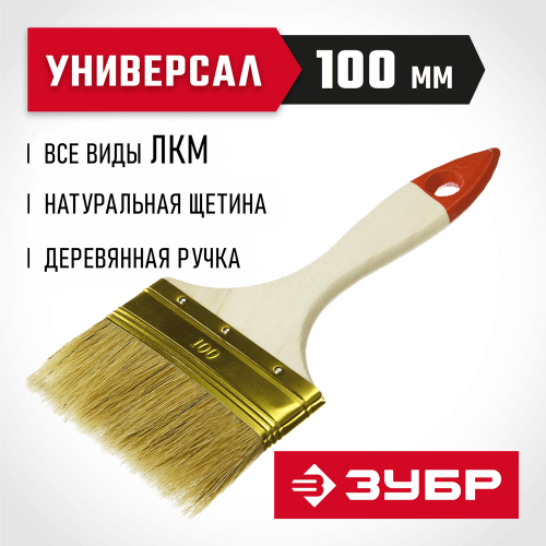 ЗУБР 100 мм, 4", щетина натуральная, деревянная ручка, кисть плоская УНИВЕРСАЛ 01099-100_z01 Оптима