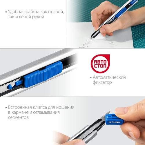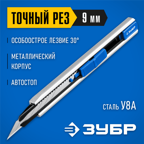 ЗУБР 9 мм, сегментированное лезвие, нож с автостопом ПРО-9А 09152 Профессионал