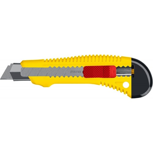 Нож с лезвием STAYER 0913_z01, применяется для разрезания различных материалов. Эргономичный корпус из ударопрочного пластика обеспечивает уверенный и надежный захват. Металлическая направляющая позволяет прикладывать значительные усилия при резе. Лезвия изготовлены из стали 65Mn и имеют двойную заточку, что обеспечивает длительный срок службы.