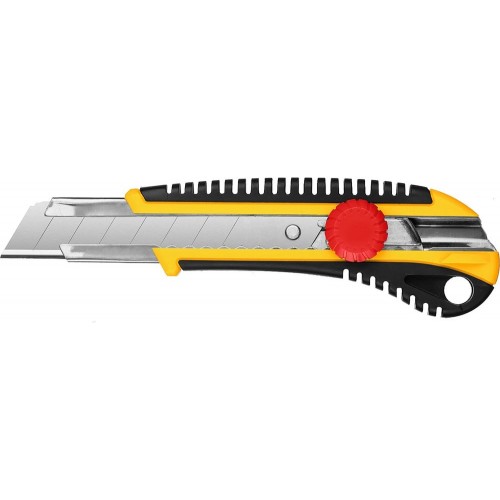 Нож с лезвием STAYER 09141_z01, применяется для разрезания различных материалов. Усиленный прорезиненный корпус обеспечивает уверенный и надежный захват для реза толстых и прочных материалов. Механическая фиксация лезвия обеспечивает уверенный и точный рез. Лезвия изготовлены из стали 65Mn и имеют двойную заточку, что обеспечивает длительный срок службы.