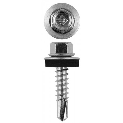 Саморезы кровельные ЗУБР 4-300310-55-025, предназначены для крепления кровельных материалов к металлическим конструкциям. Кровельные саморезы изготовлены из высококачественной стали, прошедшей термическую обработку. Шайба с прокладкой EPDM плотно прижимается к кровельному материалу, герметизируя просверленное отверстие. Шестигранная головка позволяет создать большой крутящий момент и значительно облегчает вкручивание самореза. Находят широкое применение при выполнении бытового ремонта, строительстве, сборке и установке различных конструкций. Прокладка EPDM сохраняет свои свойства при частых изменениях нагрузок, температуры и воздействии УФ излучения. Улучшенная геометрия сверла обеспечивает быстроту и легкость сверления в черепице и листовых кровельных материалах. Цинковое покрытие надежно защищает от коррозии.