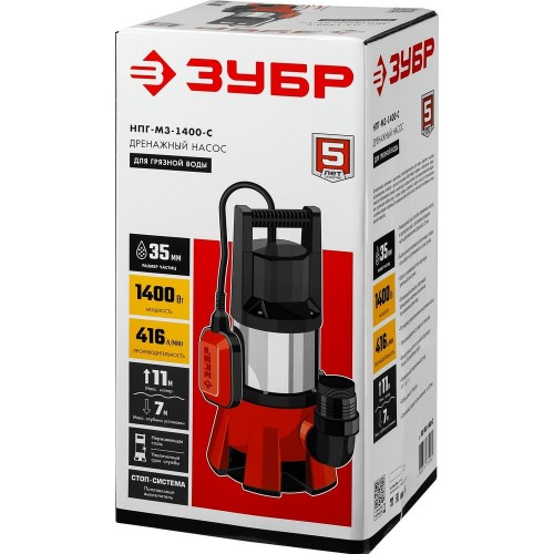 Насос дренажный ЗУБР НПГ-М3-1400-С, предназначен для автоматического перекачивания загрязнённой воды из емкостей и водоемов, организации забора воды с колодцев, скважин и подачи на высоту. Высокое качество материалов и комплектующих гарантируют стабильность работы и длительный срок службы. Корпус из нержавеющей стали и высокое качество комплектующих гарантируют стабильность работы и длительный срок службы. Поплавковый выключатель обеспечивает автоматическое вкл/выкл при изменении уровня воды. Регулировка уровней вкл/выкл насоса. Термопредохранитель для защиты от перегрева. Износостойкая рабочая крыльчатка гарантирует тихую и бесперебойную работу. Универсальный соединительный штуцер от 1'' до 1 1/2''. Кабель длиной 10 м, который может использоваться даже на большой глубине. Допускаемый размер частиц включения - до 35 мм.
