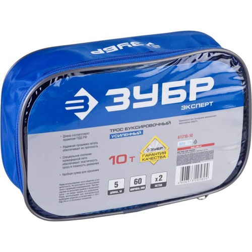 ЗУБР 10 т, ширина ленты 60 мм, длина 5 м, трос буксировочный ЭКСПЕРТ 61216-10