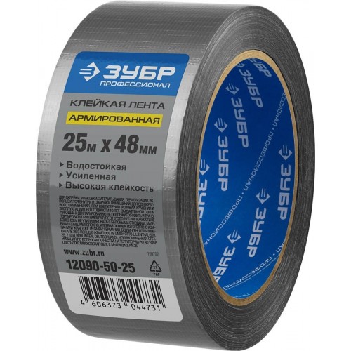 Армированная лента ЗУБР 12090-50-25, предназначена для склейки, упаковки, запечатывания, герметизации. Для использования внутри и снаружи помещений. Универсальная влагостойкая клейкая лента на тканевой основе обеспечит высокую клейкость, удобство применения и хранения. Легко отрывается.