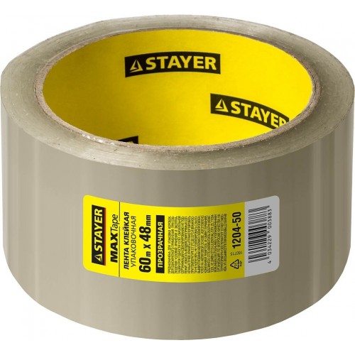 Клейкая лента STAYER 1204-50, предназначена для заклеивания коробок средней тяжести, обеспечивают надежное и прочное запечатывание как мелованных, так и обычных гофрокоробок.