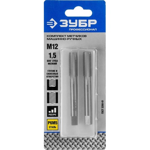 Набор метчиков М12 x 1,5 ЗУБР 4-28007-12-1.5-H2_z01, предназначен для нарезания внутренней метрической резьбы в сквозных и глухих отверстиях в сталях и цветных металлах. Изготовлен из быстрорежущей стали Р6М5 по ГОСТ 3266-81.