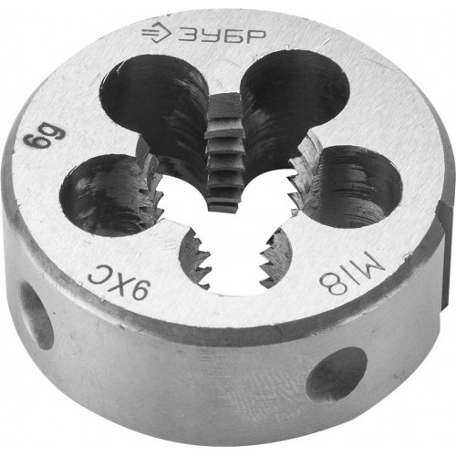 Плашка метрическая М18 x 2.5 ЗУБР 4-28022-18-2.5, предназначена для нарезания внешней, метрической резьбы на изделиях из стали и цветных металлов. Изготовлена по ГОСТ 9740-7.